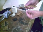 Wir benutzen ausgesuchtes Leinengarn, um es dann passend zu machen für die verschiedenen Nähte. Das Garn selbst wird mit einem speziellen Wachs eingerieben.
