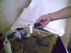 Nach dem Formgebungsprozess wird das Leder mit einer Speziallösung behandelt. Die Stücke verbleiben in diesem Zustand 2 Tage bevor das Nähen beginnt. Die Fotos 20 und 21 zeigen das fertige Holster M/87, Foto 22 zeigt das Holster M/87 im Vergleich zum Original. Auf Foto 23 ist die "Einheitliche Revolvertasche" für den RR 83 abgebildet.